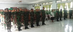 Turut hadir dalam kegiatan ini Wadan Denkesyah Mayor Ckm Muhammad Arifin, S.Km., Pj. Ketua Persit KCK Cabang LXII Kodim 1310/Bitung Ny. Sendi Tilaar Lomban, S.E., para Danramil, serta 130 personel gabungan Prajurit, PNS, dan Persit. (Lia Hambali)