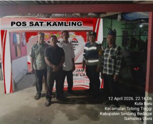 Sergai,Agaranews.com // Polres Tebingtinggi melalui Bhabinkamtibmas Polsek Tebingtinggi, Bripka Nurmansyah bersama Kepala Dusun III Desa Kuta Baru, Rusmanto melaksanakan kegiatan sambang dan monitoring ke Pos Satkamling Desa Kuta Baru Kecamatan Tebingtinggi Kabupaten Serdangbedagai (Sergai) – Sumut, Minggu (12/4/2026).