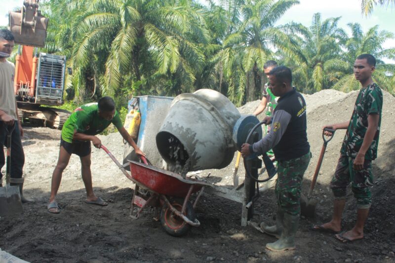 Danposramil Tripa Makmur Peltu Iputu Bisma menyampaikan kegiatan kali ini adalah pengecoran untuk memperkokoh jembatan aramco yang telah di pasang di bawahnya ucap Danposramil Tripa Makmur