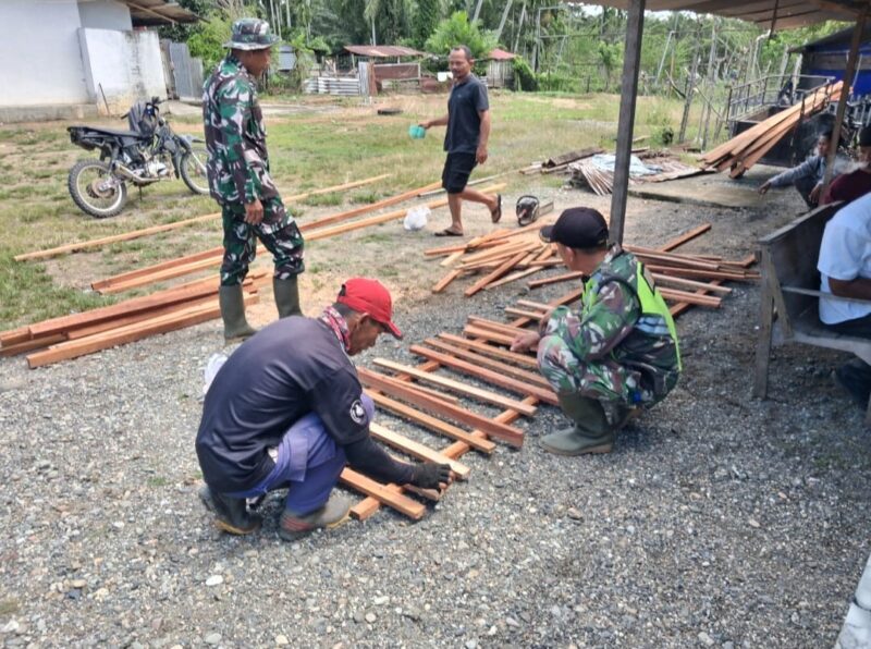 Nagan raya Agaranews.com – Bintara Pembina Desa (Babinsa) Posramil Kuala Pesisir Kodim 0116/Nara Serka Sunanto membantu meringankan pekerjaan warga, Babinsa melaksanakan karya bakti membantu warga binaan membuat pagar rumah tempat tinggal Andre di Desa Padang Panyang Kecamatan Kuala Pesisir Kabupaten Nagan raya, Senin (13/04/2026)