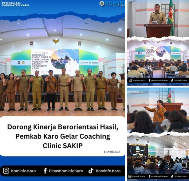 Tanah Karo, AgaraNews.com // Bupati Karo, Brigjen Pol (Purn.) Dr. dr. Antonius Ginting, Sp.OG., M.Kes., yang diwakilkan oleh Sekda Kab.Karo, Gelora Kurnia Putra Ginting, S.STP., MM., membuka kegiatan Coaching Clinic Sistem Akuntabilitas Kinerja Instansi Pemerintah (SAKIP) di Aula Rakoetta Brahmana, Kantor Bupati Karo, pada Selasa (14/04/2026).