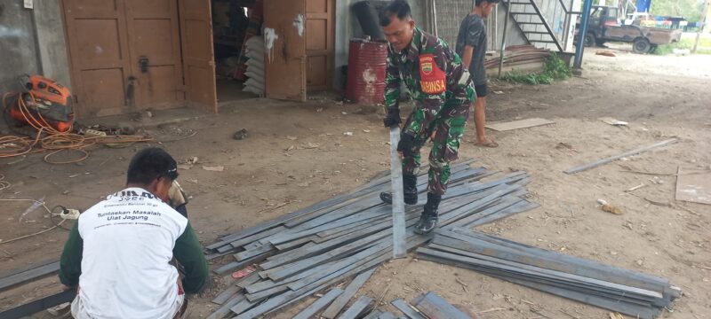 Pakpak Bharat,AgaraNews.com// Semangat gotong royong kembali terlihat di tengah masyarakat Dusun Sibancer, Desa Kaban Tengah, Kecamatan STTU Jehe. Pada Selasa (14/4/2026), Babinsa Koramil 06/Kerajaan Kodim 0206/Dairi, Serda SP Sigiro, bersama warga melaksanakan perakitan material besi sebagai bagian dari percepatan pembangunan Jembatan Perintis.