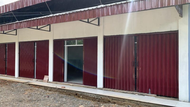 Adapun kegiatan yang dilaksanakan saat ini meliputi pemasangan batu bata merah pada saluran keliling, pengecatan plafon ruang gerai dan ruang loket, serta pemasangan plafon pada jalur utama (warehouse).