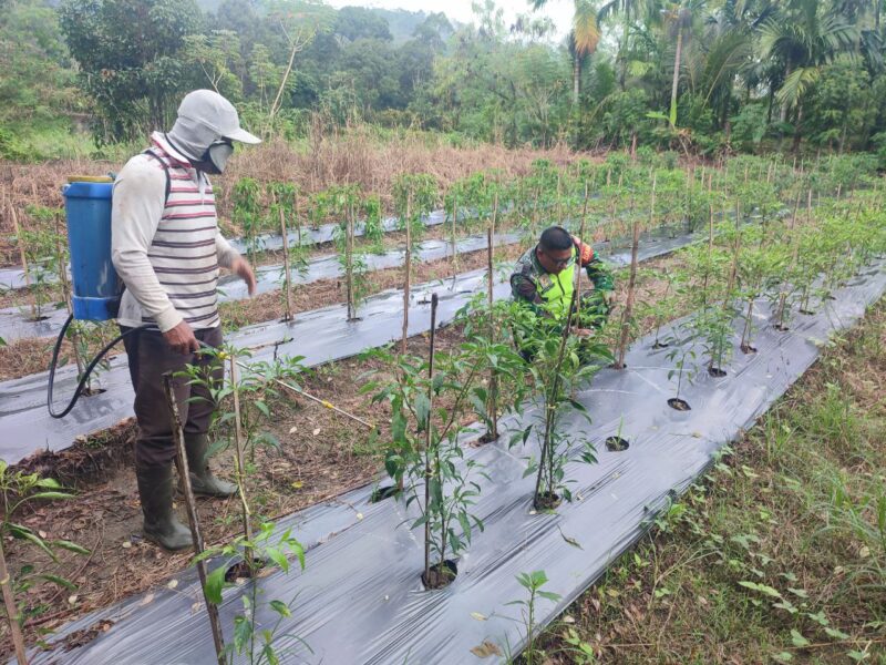 Kutacane Agaranews.com – Babinsa Posramil Ketambe Serka musliyadi jajaran Kodim 0108/Agara Bersama Pok tani Membersihkan dan perawatan Tanaman cabe merah Di Desa Suka Rimbun Kecamatan Ketambe, Kabupaten Aceh Tenggara. Rabu (15/04/2026).