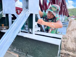 Tapanuli Utara, AgaraNews .com // Kodim 0210/TU resmi merampungkan pembangunan jembatan Modular di Desa Hutagalung Siwaluompu, Kecamatan Tarutung, Kabupaten Tapanuli Utara, Selasa (14/4/2026). Pembangunan ini menjadi bagian dari upaya percepatan pemulihan infrastruktur pascabencana, guna mendukung kelancaran mobilitas masyarakat secara aman dan efektif.Pengerjaan jembatan tersebut melibatkan personel gabungan dari Koramil 22/Tarutung Kodim 0210/TU bersama Yon TP 906/Sanalenggam. Seluruh personel bekerja secara terpadu, bahu-membahu menyelesaikan proyek yang menjadi akses vital bagi masyarakat di wilayah tersebut.Jembatan Modular ini berfungsi menghubungkan Desa Hutagalung Siwaluompu dengan sejumlah desa lain, yakni Desa Sirajaoloan, Desa Hutauruk, dan Desa Simamora. Dengan rampungnya pembangunan jembatan, aktivitas perekonomian, distribusi logistik, serta akses antarwilayah kini kembali berjalan normal dan lebih lancar.Adapun seluruh tahapan pekerjaan telah diselesaikan 100 %, termasuk pengecoran sisi pangkal jembatan di kedua tepi, pengecatan, serta pengerasan jalan pada sisi pendekat jembatan.Kapendam I/Bukit Barisan, Kolonel Infanteri Asrul Kurniawan Harahap, menyampaikan bahwa TNI AD akan terus hadir membantu pemerintah daerah dan masyarakat dalam percepatan pemulihan infrastruktur. Hal ini merupakan wujud nyata pengabdian TNI kepada rakyat sekaligus memperkuat kemanunggalan TNI dengan masyarakat.(Lia Hambali)