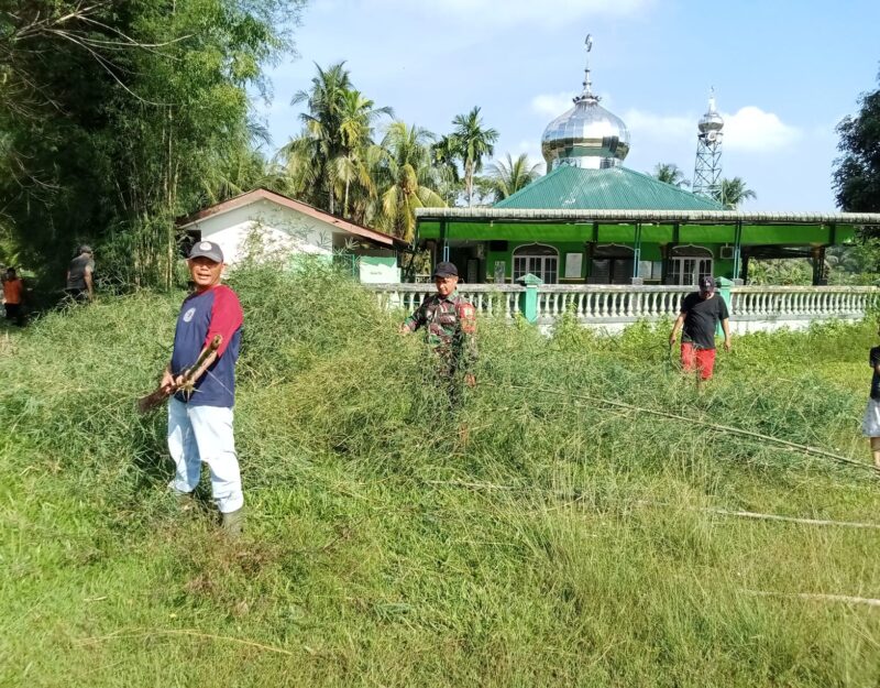 Medan, AgaraNews. Com // Koptu Lilik Sofyan Bersama masyarakat desa Batu Rejo bersama -sama gotong royong untuk membersihkan Bambu halaman masjid, Kamis (16/04/2026).