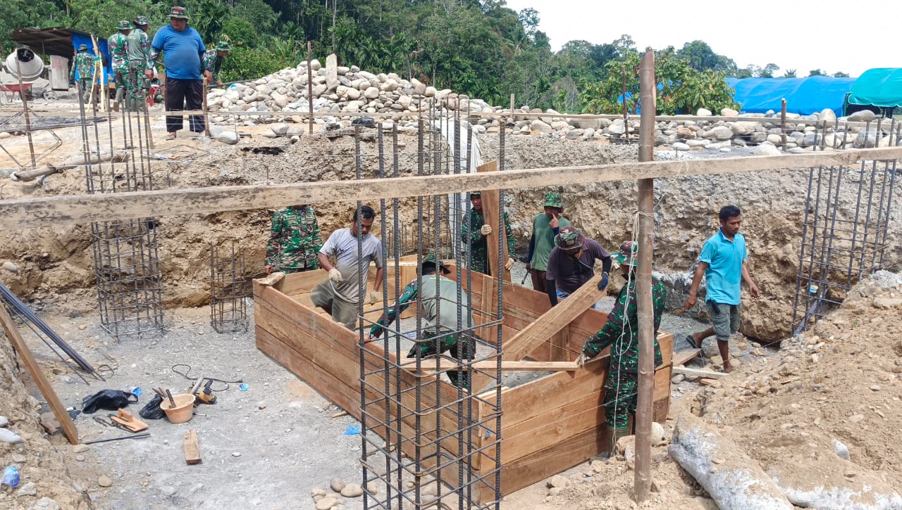 Babinsa Jajaran Kodim 0108/Agara Kebut Pengecoran Tiang Pondasi Jembatan Gantung Garuda