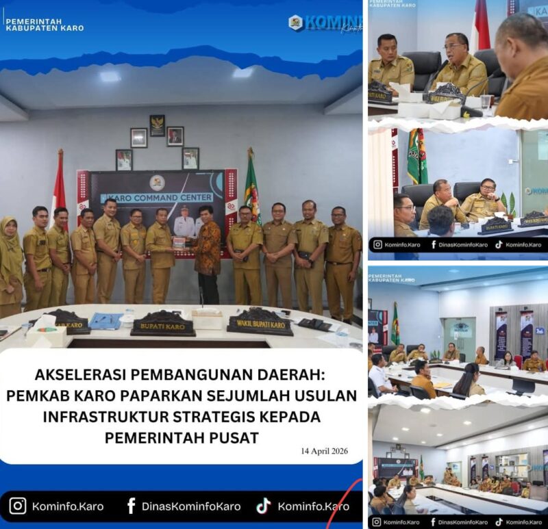 Tanah Karo, AgaraNews.com // Pemerintah Kabupaten Karo menggelar Rapat Monitoring dan Evaluasi (Monev) Usulan Infrastruktur secara daring pada Selasa (14/04/2026) untuk mempercepat pemerataan pembangunan dan mengatasi kendala konektivitas wilayah. Rapat ini dipimpin oleh Bupati Karo, Brigjen Pol (Purn) Dr.dr. Antonius Ginting, Sp.OG., M.Kes, dan dihadiri oleh Wakil Bupati Karo, Sekretaris Daerah, serta jajaran Kepala OPD terkait.