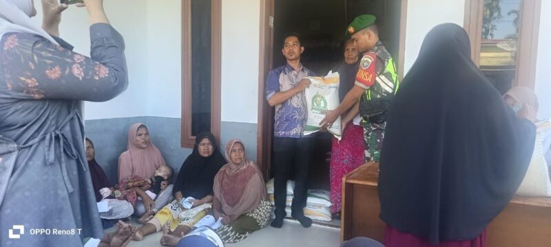 Kutacane Agaranews.com – Babinsa Posramil Deleng Pokhkisen Koptu Sandra jajaran Kodim 0108/Agara menghadiri kegiatan Pembagian Sembako Bantuan pangan Jenis beras 10 Kg/Goni Minyak makan kita 1 Liter/Bungkus ke desa-desa di wilayah kecamatan Deleng Pokhkisen Kabupaten Aceh Tenggara, Jumat (17/04/2026).