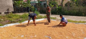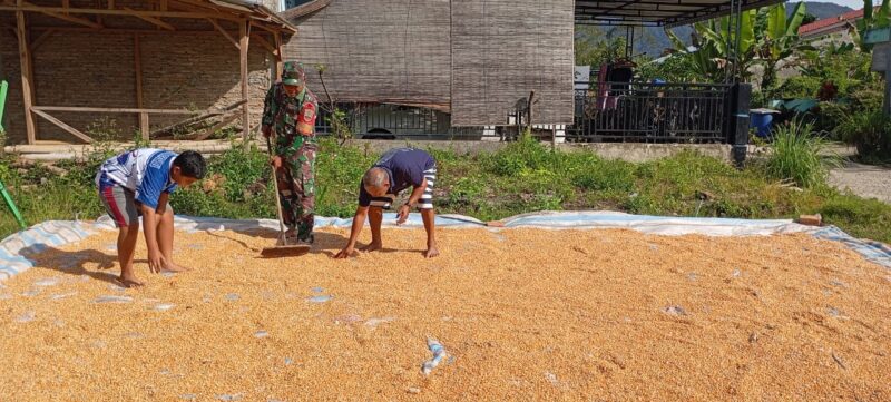 Di sela kegiatannya, Serda HK Sipayung menjelaskan bahwa penjemuran jagung merupakan tahapan penting pascapanen.
