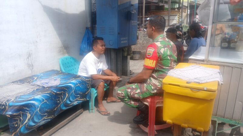 Medan, AgaraNews. Com // Babinsa Koramil 0201-04/Medan Kota, Serda Choirul Anwar Siregar, melaksanakan kegiatan komunikasi sosial (komsos) bersama warga binaan di Jalan AR Hakim, Kelurahan Sukaramai I, Kecamatan Medan Area, Minggu (19/04/2026).