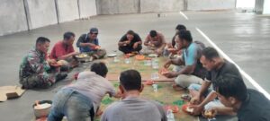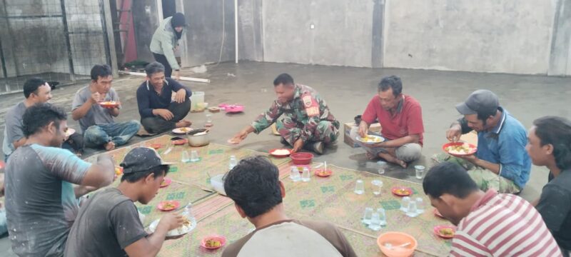 Suasana hangat tercipta di sela pengawasan saat Babinsa dan kepala desa memilih untuk makan siang bersama para pekerja bangunan. Momen ini dimanfaatkan sebagai ajang komunikasi santai namun produktif guna membahas perkembangan pekerjaan yang kini telah mencapai 79,63 persen. Hadir pula dalam kesempatan tersebut Kepala Tukang Syahya Capah dan Ketua Pemuda Erwin Banurea.