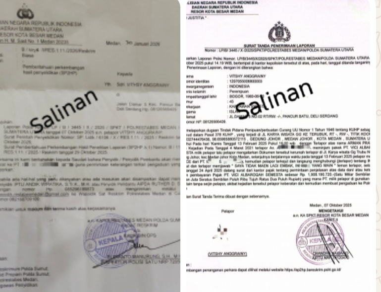 Atas kejadian ini, PT VAS telah melaporkan dugaan tersebut ke Polrestabes Medan dengan Nomor: LP/B/3445/X/2025/SPKT/Polrestabes Medan/Polda Sumatera Utara tertanggal 7 Oktober 2025.