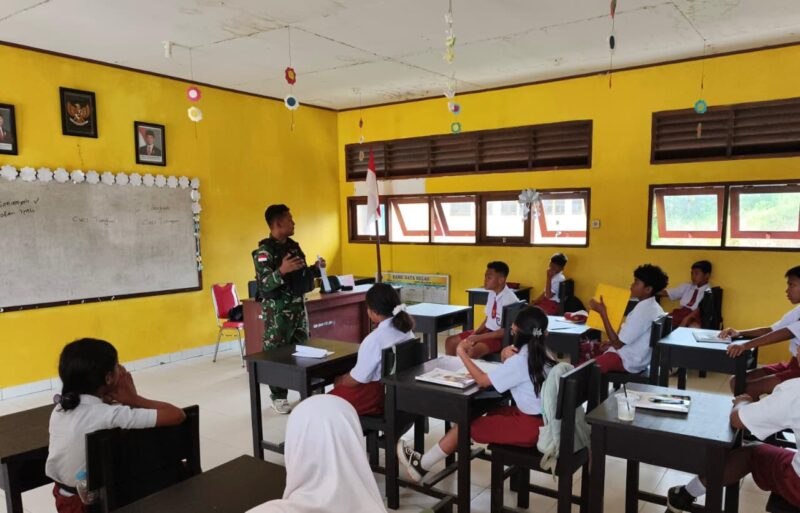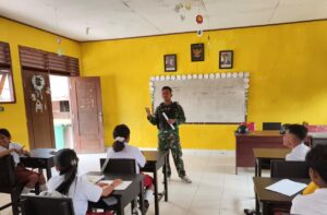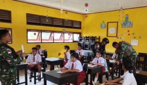 Teluk Bintuni, AgaraNews.com – Untuk menanamkan semangat belajar dan karakter disiplin, Satgas Yonif 410/Alugoro mengajarkan Beberapa materi tentang kenegaraan kepada para siswa/siswi di SD Inpress Stengkol 3 di Distrik Vascodamnem Kab. Teluk Bintuni, Papua Barat. Senin, (20/4/2026).