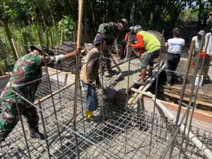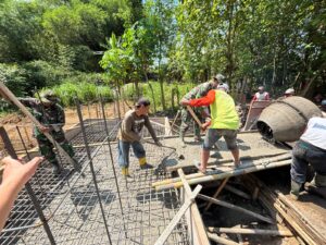 Kegiatan gotong royong ini berlangsung dengan penuh antusias. Sejak pagi hari, warga dari berbagai kalangan turut hadir, sementara anggota TNI ikut terjun langsung membantu proses pengadukan hingga pengecoran material pondasi. Kebersamaan yang terjalin mencerminkan sinergi kuat antara TNI dan masyarakat dalam membangun fasilitas umum yang bermanfaat bagi banyak orang.