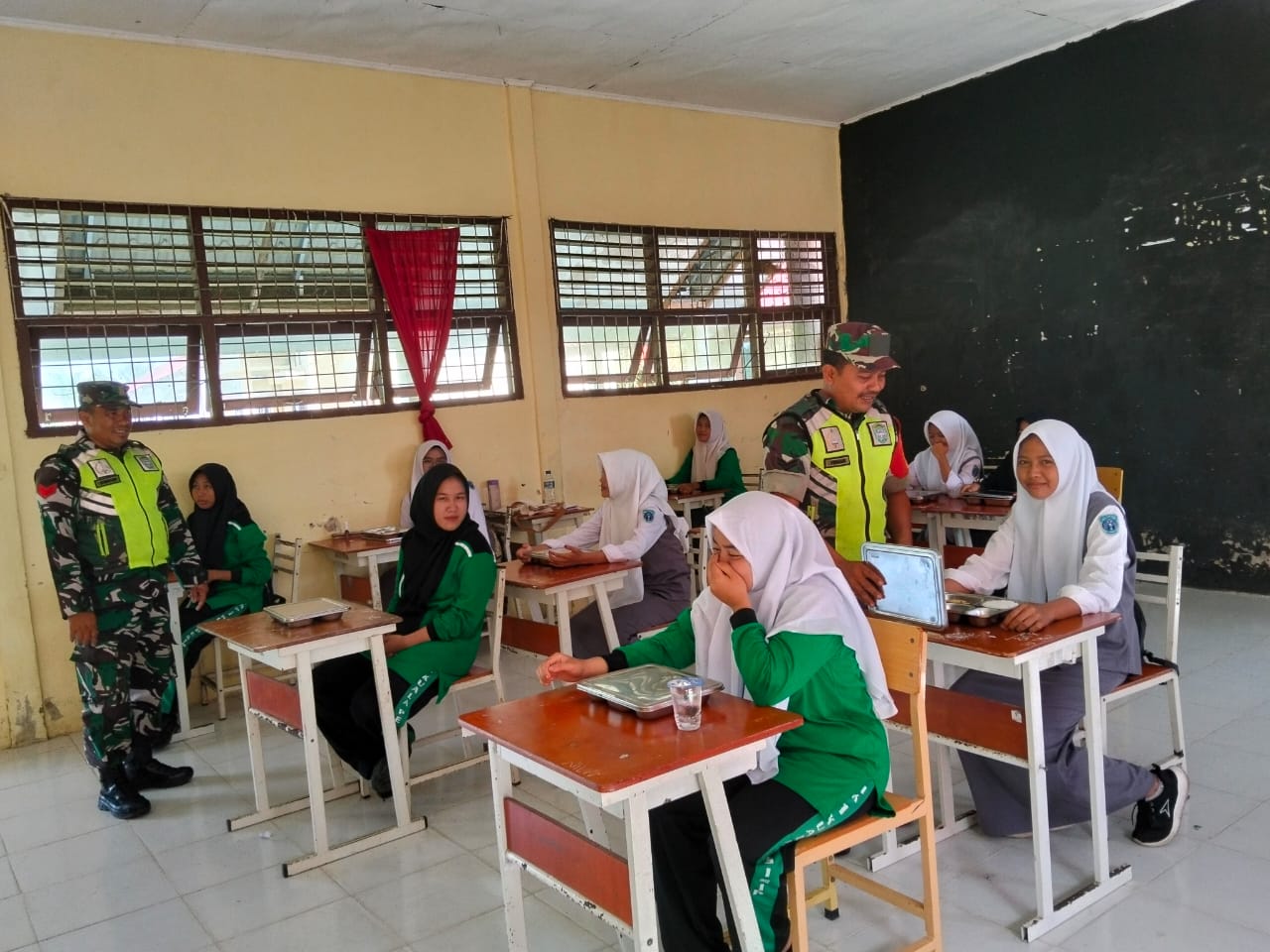 Babinsa turun langsung ke sekolah untuk mengawal dan mendampingi proses pendistribusian makanan bergizi gratis agar berjalan lancar, aman, tertib, dan tepat sasaran kepada siswa.