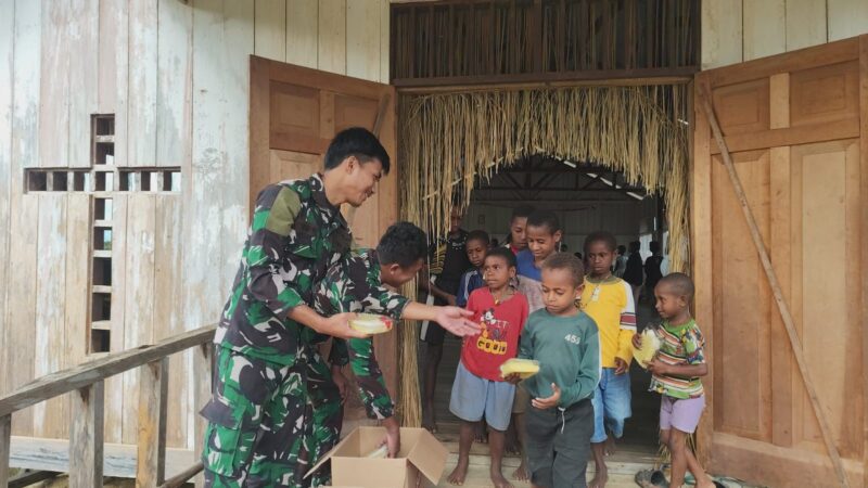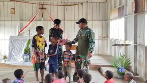Pos Tarup Yonif 751/VJS Ibadah Minggu Bersama Warga, Meriahkan Sukacita dengan Lomba Cari Telur untuk Anak-Anak