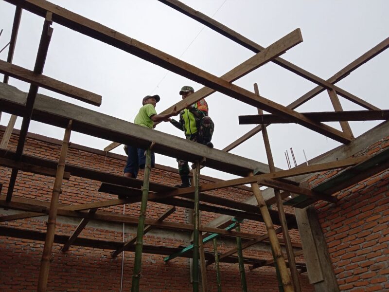 Tingkatkan Kebersamaan, Babinsa Bantu Pasang Rangka Atap Rumah Warga