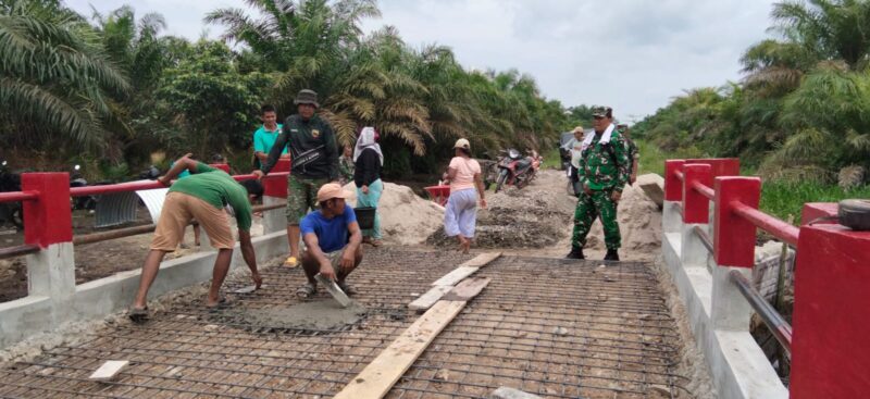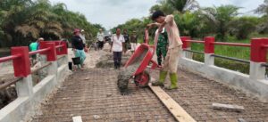 Pengerjaan jembatan yang memiliki bentang 7 meter dengan lebar 4 meter tersebut terus dipacu melalui kerja sama antara personel TNI dan masyarakat. Pada tahap lanjutan, kegiatan difokuskan pada proses plester serta perapian tiang cor pengaman bagian atas jembatan guna memastikan kekuatan dan keamanan konstruksi.