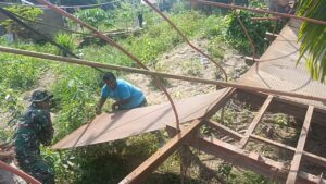 Aceh Utara,AgaraNews.com//Pasca hancur diterjang banjir, jembatan gantung di Desa Rambong Payong, Kecamatan Sawang mulai dibongkar oleh personel Koramil 19/Sawang jajaran Kodim 0103/Aceh Utara, Jumat (24/4/2026). Pembongkaran ini menjadi langkah awal pembangunan kembali jembatan gantung “Garuda”.