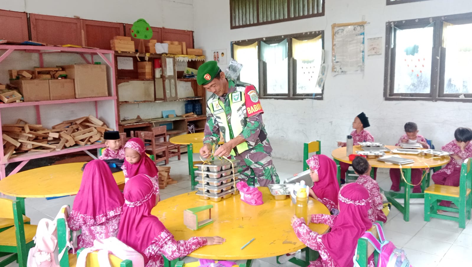 Babinsa Posramil Bukit Tusam Dampingi Pembagian Makan Bergizi Gratis di Sekolah TK,SD Dan MIN