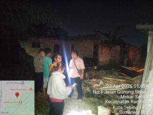 Sergai,Agaranews.com // Sebuah rumah yang dijadikan cafe milik Taripar Siburian mengalami kebakaran pada Kamis dinihari (23/4/2026) sekitar pukul 00.30 WIB di Dusun X Desa Paya Bagas Kecamatan Tebingtinggi Kabupaten Serdangbedagai (Sergai) – Sumut.