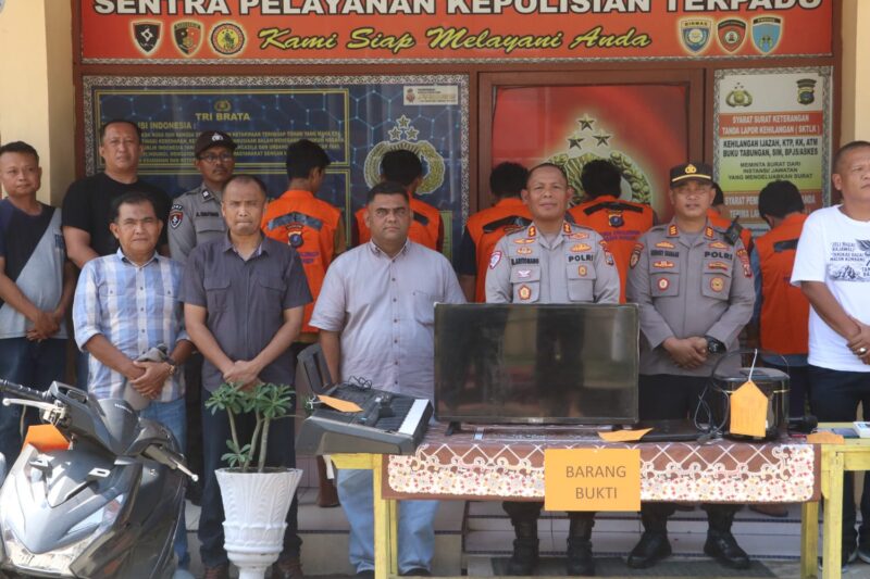 “Di depan kita ada beberapa barang bukti yang kita tampilkan — hasil curian dari Curanmor, hasil pembongkaran rumah, handphone curian, hingga barang hasil pembelian dari pencurian tersebut,” ungkap AKBP Marganda di hadapan awak media dan tamu undangan.