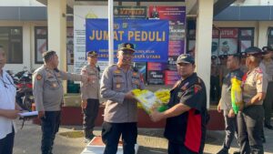 Dalam kegiatan tersebut, Polsek Koja juga menyalurkan bantuan sosial berupa beras kemasan 5 kilogram kepada para peserta sebagai bentuk kepedulian terhadap masyarakat.