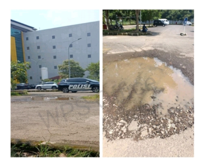 Hasil pantauan di lapangan menunjukkan akses jalan utama di area rumah sakit dipenuhi lubang besar yang menganga.