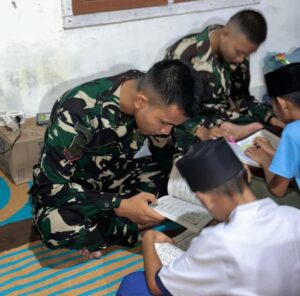 Langkat, AgaraNews.com // Guna memperkuat mental spiritual,dan mengatasi buta huruf Al-Quran sejak dini, serta meningkatkan iman dan taqwa, personel Satgas TNI Manunggal Membangun Desa (TMMD) ke-128 Tahun 2026 mengajari anak-anak Desa Pasar Rawa mengaji Iqro dan Al Qur’an,Kamis 23 April 2026,malam.
