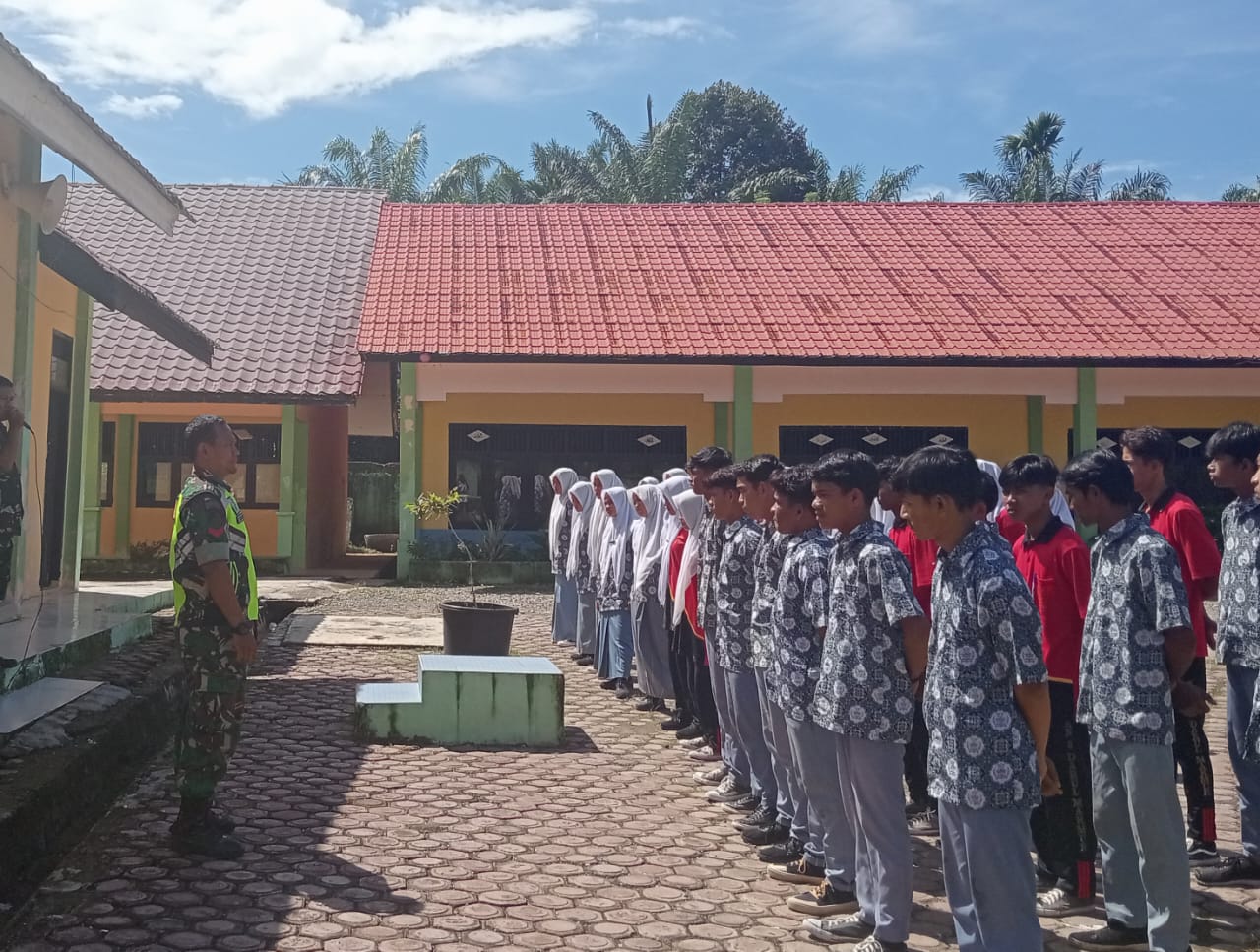 Nagan Raya Agaranews.com – Bersinergi dengan dunia pendidikan merupakan salah satu tugas TNI dengan melaksanakan kegiatan pemberian materi wawasan kebangsaan untuk menumbuhkan jiwa nasionalisme dan patriotisme dalam diri generasi muda penerus bangsa, hal itulah yang dilakukan Babinsa Posramil Tripa Makmur di SMA Negeri 3 Darul Makmur di Desa Lueng Kebeu Jagat Kecamatan Tripa Makmur. Jum’at (24/04/2026).