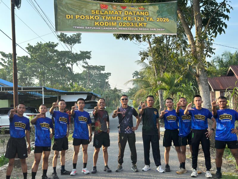 Langkat, AgaraNews.com // Dalam rangka menjaga kebugaran fisik dan kesehatan,personel Satgas TNI Manunggal Membangun Desa (TMMD) ke-128 Kodim 0203/Langkat melaksanakan pembinaan fisik (Binsik) lari sore bersama anak-anak dan remaja di Desa Pasar Rawa Kec Gebang Kab.Langkat Prov.Sumut,Jumat sore 24 April 2026.