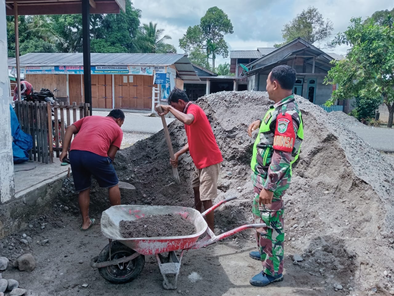 Kopka Nur Andika menyatakan Disela² kegiatan gotong royong, ini merupakan kebersamaan TNI dengan masyarakat, yang selalu bekerja sama mengatasi kesulitan yang dihadapi masyarakat serta bentuk kekompakan Babinsa dgn warga.