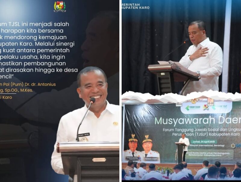 Sebelumnya, Bupati Karo, Brigjen Pol (Purn) Dr. Dr. Antonius Ginting, Sp.OG., M.Kes., resmi melantik dan mengukuhkan Pengurus Forum Tanggung Jawab Sosial dan Lingkungan Badan Usaha (TJSLBU/CSR) Kabupaten Karo masa bakti 2026–2031 di Hotel Sibayak Internasional, Berastagi, Sabtu (24/04/2026).