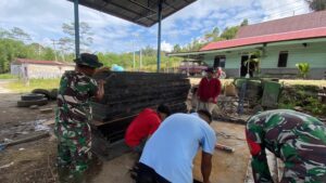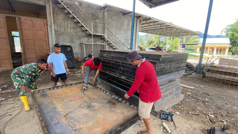 Dalam kegiatan tersebut, personel TNI tidak hanya melakukan pengawasan, tetapi juga terjun langsung bekerja bersama masyarakat. Dengan kekuatan lima personel Koramil dan empat tenaga tukang, proses pabrikasi dan pemotongan plat bordes bunga dilakukan secara gotong royong. Cuaca cerah turut mendukung kelancaran pekerjaan yang menjadi tahapan penting dalam konstruksi lantai jembatan gantung.