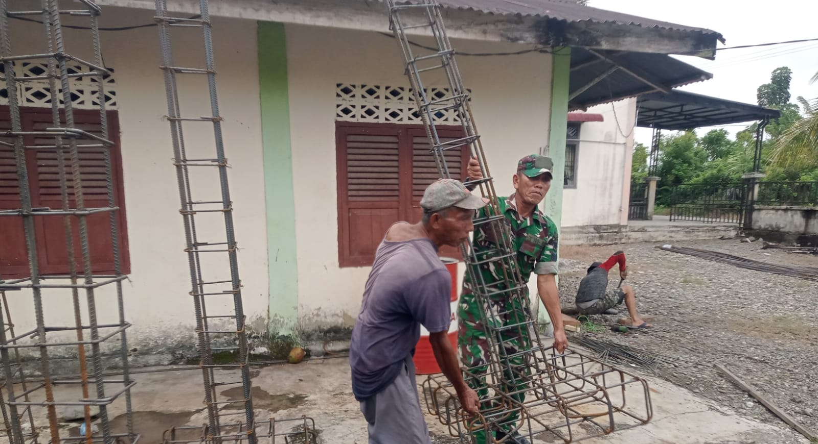 Kegiatan yang dilakukan oleh Babinsa bersama Pekerja melaksanakan pemasangan besi yang akan digunakan sebagai tiang tiang untuk gedung koperasi merah putih kegiatan tersebut merupakan bentuk dukungan TNI kepada program pemerintah untuk percepatan pembangunan koperasi yang ada didesa binaan .