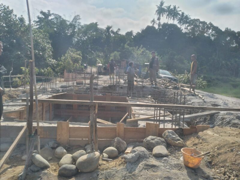 dan pemasangan besi lantai pondasi tepi jauh dan Pelibatan Personil TNI personil Kodim 20 Orang Zibang 1 orang, Pemdes 4 Orang, Warga Masyarakat 17 Orang.