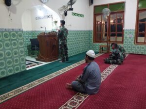 Seperti yang tampak pada pagi hari, Praka Aris salah satu personel Satgas TMMD turut mengumandangkan adzan Subuh di masjid desa setempat. Suara adzan yang menggema di tengah suasana pagi yang sejuk menjadi penanda dimulainya aktivitas ibadah bagi warga sekitar.