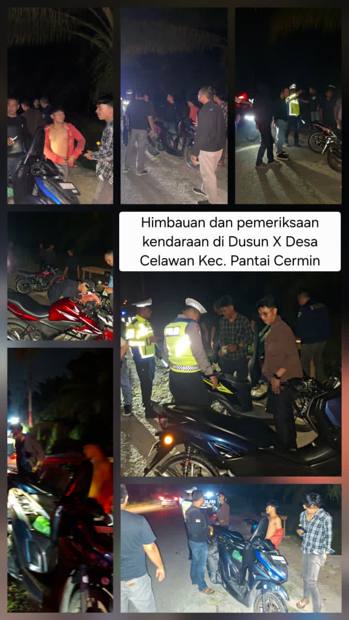 Patroli dibagi dua tim dengan rute utama di Kecamatan Telukmengkudu Pantai Cermin, dan Tanjungberingin Kabupaten Sergai – Sumut.. Tim 1 di bawah komando Kasat Lantas AKP Gokma Silitonga, didampingi Ipda Susanto dan Ipda Irwan Fauzy, menyisir Dusun I Desa Pantai Cermin Kiri, Jalan Lintas Pantai Cermin Desa Kota Parih, serta Dusun X Desa Celawan Kecamatan Pantai Cermin Kabupaten Sergai.