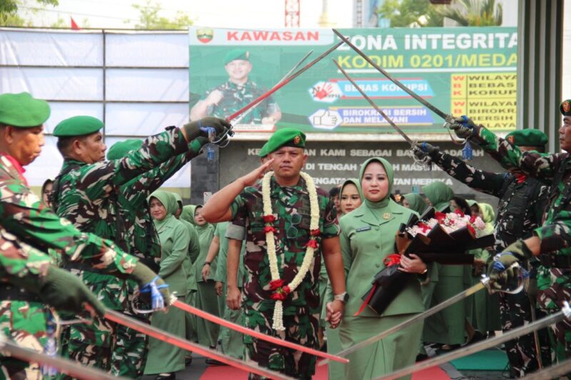 Medan, AgaraNews.com // Sebagai simbol penghormatan, kesinambungan kepemimpinan, dan penghargaan atas pengabdian selama bertugas,seluruh personel Kodim 0201/Medan Jajaran melaksanakan Acara Tradisi Korps Pedang Pora Penyambutan dan Pelepasan Dandim 0201/Medan,Sabtu 25 April 2026,sekira pukul 14.10 Wib,bertempat di Makodim 0201/Medan, Jl. Pengadilan No.8, Petisah Tengah, Kec. Medan Petisah, Kota Medan.