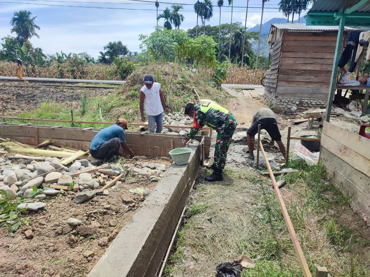 Babinsa Bantu Warga Binaan Bangun pondasi Rumah