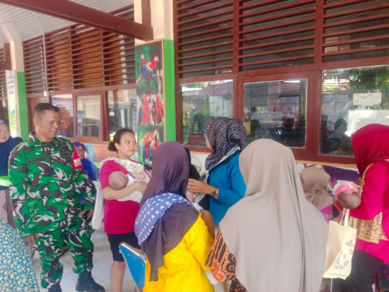 Medan, AgaraNews. Com // Dalam upaya mendukung program Balita Sehat, Keluarga Berencana (KB), dan pencegahan stunting, Babinsa Koramil 0201-04/MK Serda Mualim Siregar mendampingi pelaksanaan pelayanan kesehatan ibu dan balita yang berlangsung di jln Bromo GG Bahagia no 14,Kel Tegal Sari ll, Kec. Medan Area Pada senin(27/04/2026).