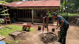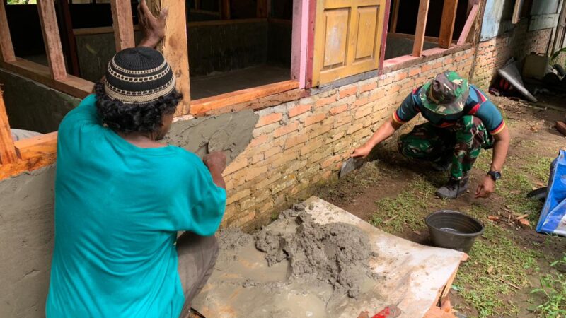 Dengan semangat gotong royong, anggota Satgas TMMD dan warga bahu-membahu mengerjakan renovasi rumah tersebut. Mulai dari perbaikan struktur bangunan hingga penyempurnaan bagian dalam rumah dilakukan secara bertahap agar hunian tersebut dapat segera ditempati dengan layak.