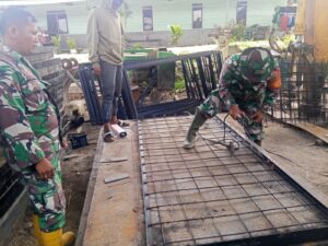 Sebanyak lima personel Koramil 06/Kerajaan dan empat orang tukang dilibatkan dalam kegiatan tersebut. Fokus pekerjaan hari ini meliputi pemotongan serta pengelasan plat bordes yang akan digunakan sebagai lantai jembatan gantung. Tahapan ini menjadi bagian penting dalam memastikan kekuatan konstruksi sekaligus keselamatan pengguna jembatan di masa mendatang.