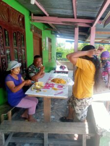 Suasana semakin akrab ketika kedua ibu tersebut menyuguhkan buah nenas segar hasil panen dari ladang mereka. Nenas yang disajikan merupakan komoditas unggulan yang tengah dibudidayakan oleh para pettani di Desa Ulu Merah, yakni nenas madu yang dikenal memiliki rasa manis dan kualitas baik.