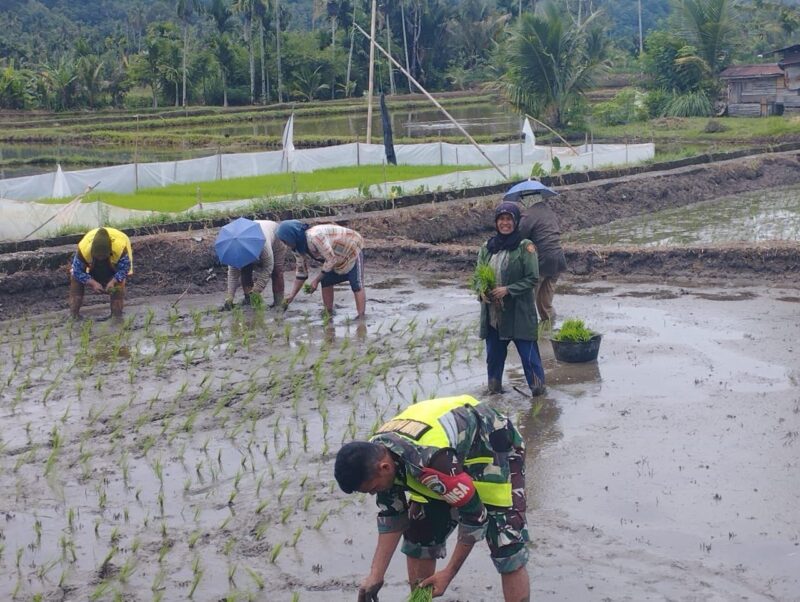Kutacane  Agaranews.com – Babinsa Posramil Deleng Pokhisen Serma Dodi Saputra jajaran Kodim 0108/Agara terjun langsung ke sawah petani melakukan Penanaman bibit padi milik Ibu Irmawati di desa Sepakat Kecamatan Deleng Pokhisen Kabupaten Aceh Tenggara,Selasa (28/04/2026).