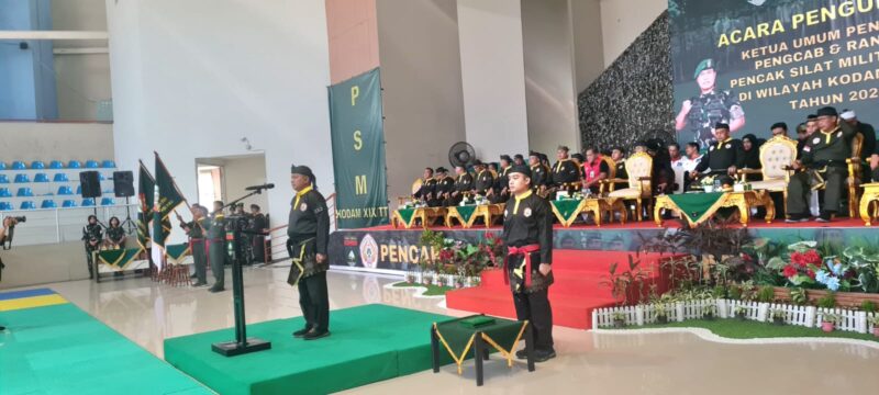 Pekanbaru, AgaraNews.com || Pengukuhan kepengurusan Pencak Silat Militer (PSM) wilayah Kodam XIX/Tuanku Tambusai dipimpin langsung oleh Kasdam XIX/Tuanku Tambusai Brigjen TNI Rudi Hermawan, S.E., M.M. dalam prosesi yang berlangsung khidmat dan penuh semangat. Kegiatan ini turut dihadiri Sesdisjasad Kolonel Inf Ade Eka Putra, S.I.P., M.M. selaku perwakilan pengurus pusat PSM, para Pejabat Utama (PJU) Kodam, serta para Komandan Satuan (Dansat) jajaran Kodam XIX/Tuanku Tambusai.