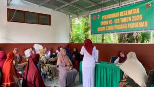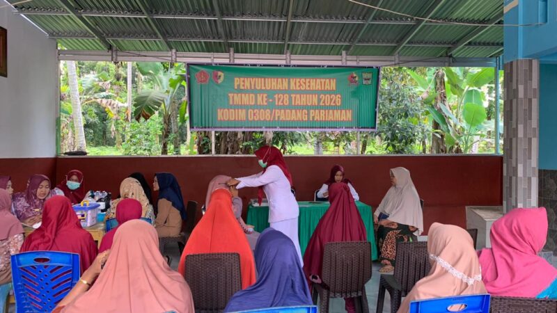 Dalam rangka mendukung program TNI Manunggal Membangun Desa (TMMD) Ke-128 Tahun 2026, kegiatan penyuluhan kesehatan digelar di Posko TMMD yang berlokasi di Korong Balai Kamih, Nagari Sungai Geringging Kuranji Hulu, Kabupaten Padang Pariaman, Selasa (28/04/2026).