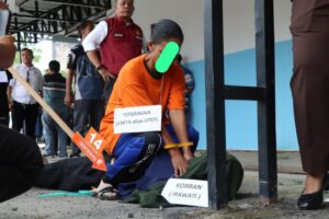 Rekonstruksi digelar di Depan Gedung Satreskrim Polres Sergai, Jalan Negara Desa Firdaus Kecamatan Seirampah Kabupaten Sergai – Sumut, dengan dasar: LP/A/03/111/2026/SPKT SAT RESKRIM/POLRES SERGAV POLDA SUMUT, tanggal 09 Maret 2026.
