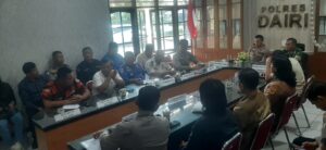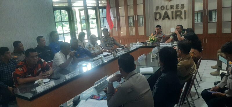 Rapat yang dipimpin Kapolres Dairi AKBP Otniel Siahaan, S.I.K., M.I.K. tersebut dihadiri sejumlah unsur lintas sectoral, di antaranya pejabat Polres Dairi, perwakilan pemerintah daerah, Satpol PP, Perhubungan City, Kesehatan City, Damkar, Kominfo, hingga organisasi masyarakat. Kehadiran berbagai pihak ini mencerminkan komitmen bersama dalam menciptakan situasi keamanan dan ketertiban yang kondusif di wilayah Kabupaten Dairi.